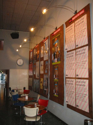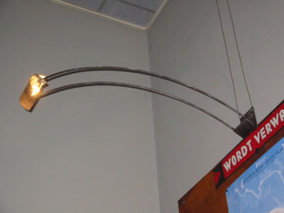 Vijf verlichtingsarmaturen om aankondigingspanelen in de foyer van Theater Lanteren Venster Rotterdam te verlichten.